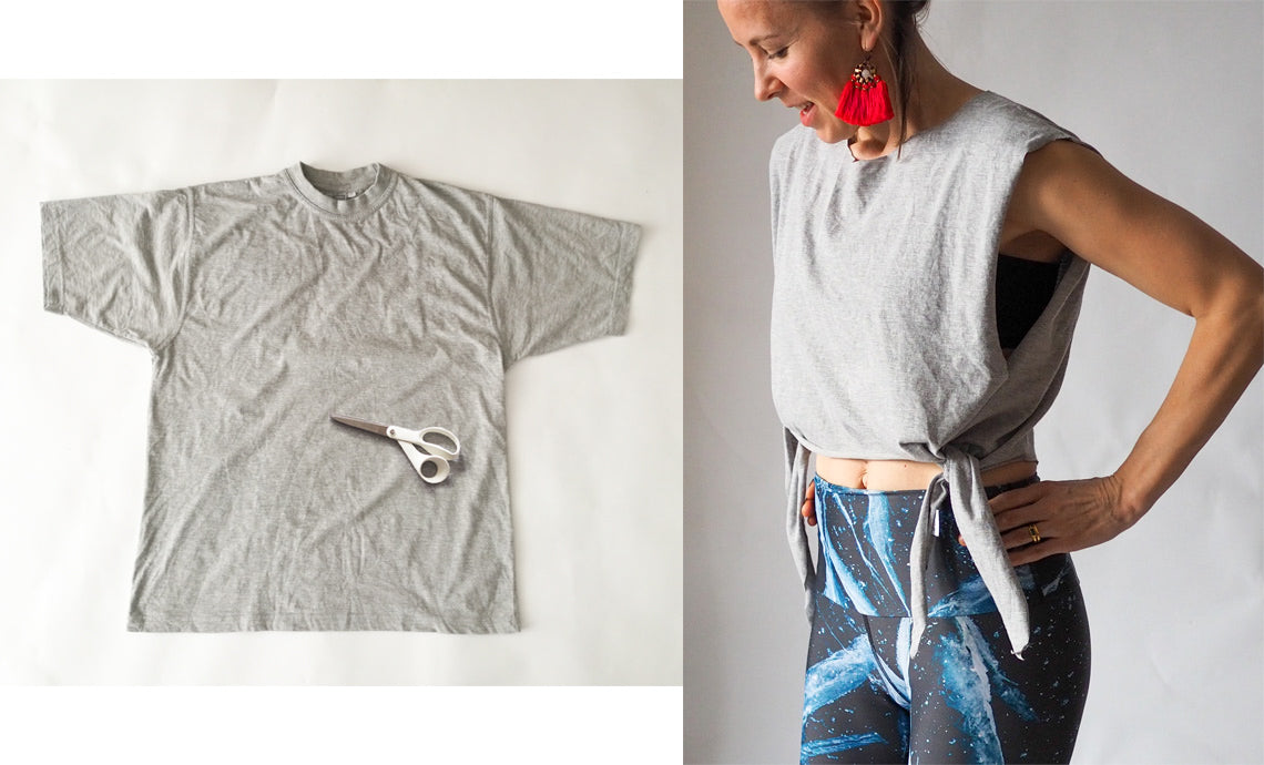 Do you have an old oversized T-shirt that you can't part with? Turn it into a trendy yoga top with these simple instructions - no sewing required!